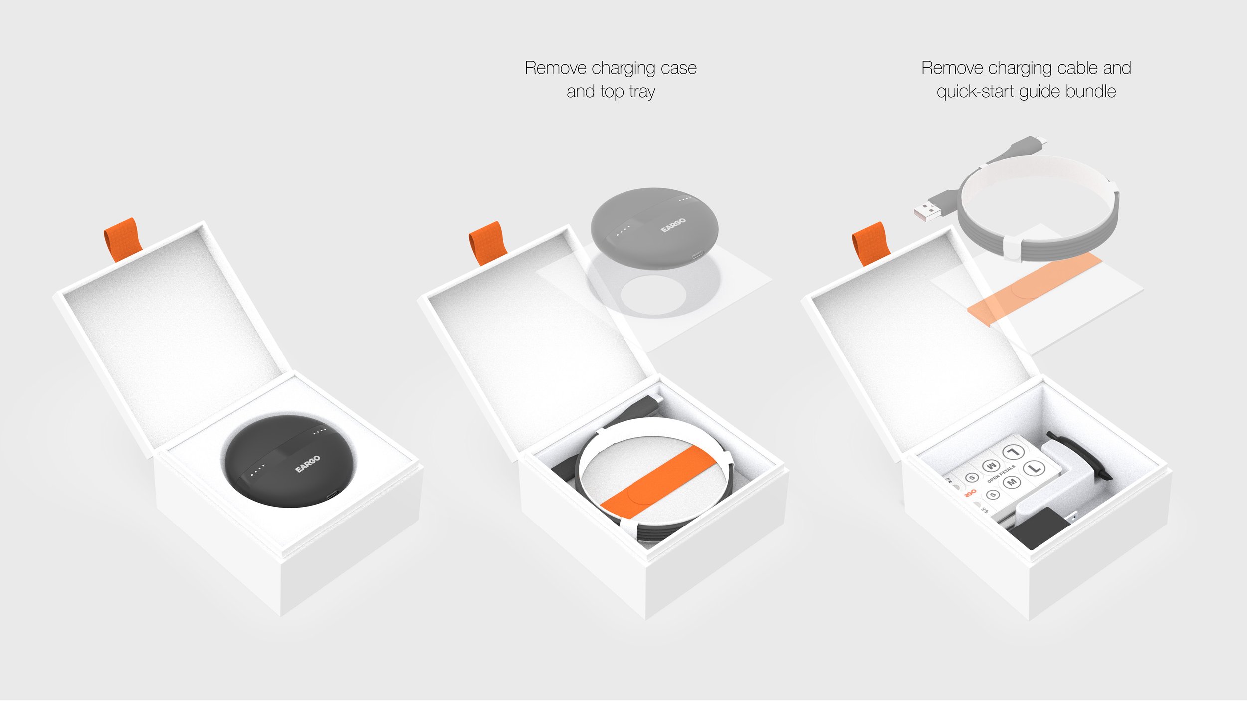 Design product packaging for Eargo 5 to ship the following items to customers using the existing box: